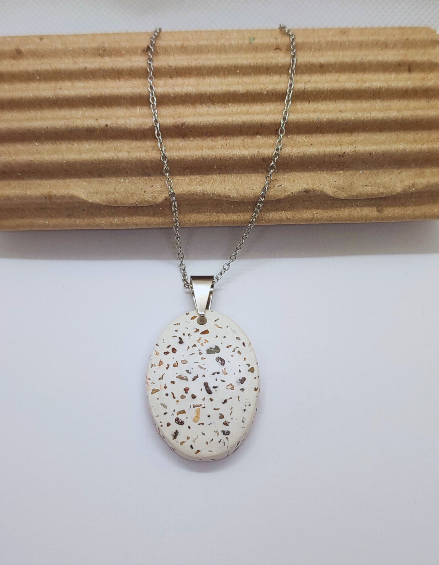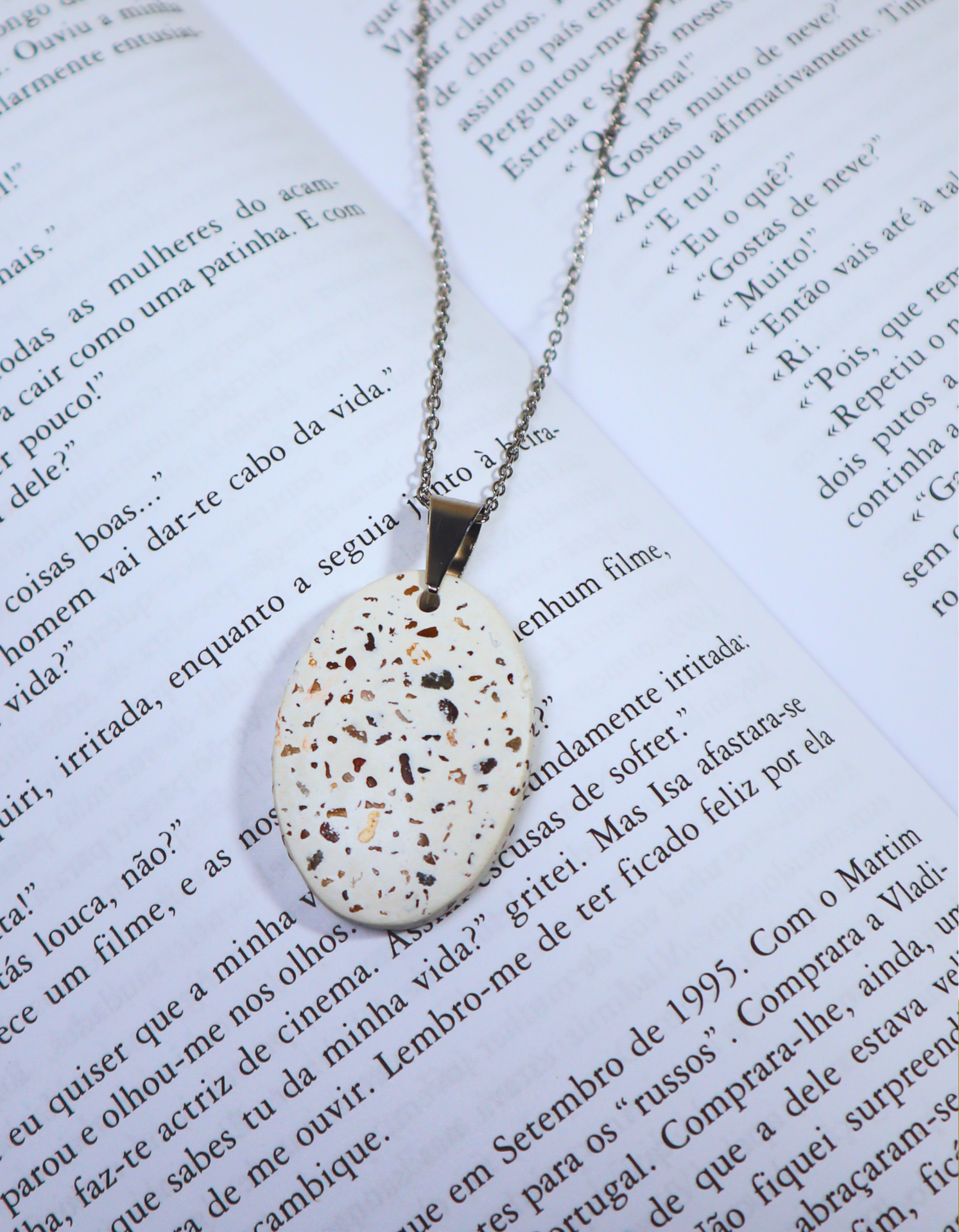 Afirme a sua singularidade com uma peça que resiste ao tempo. O Colar Aurora une a estética orgânica do cimento à durabilidade eterna do aço inoxidável. Cada pendente é moldado à mão, utilizando fragmentos de pedra para criar um efeito terrazzo que é impossível de replicar, tornando a sua peça rigorosamente única no mundo.