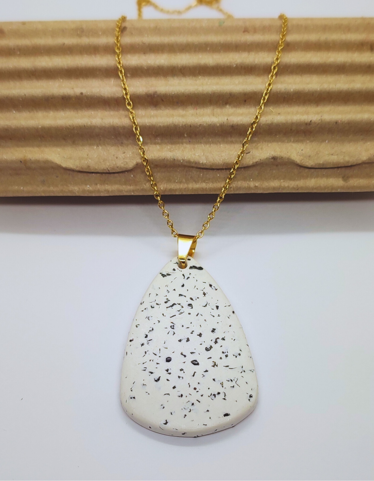 Afirme a sua singularidade com uma peça que resiste ao tempo. O Colar Aurora une a estética orgânica do cimento à durabilidade eterna do aço inoxidável. Cada pendente é moldado à mão, utilizando fragmentos de pedra para criar um efeito terrazzo que é impossível de replicar, tornando a sua peça rigorosamente única no mundo.
