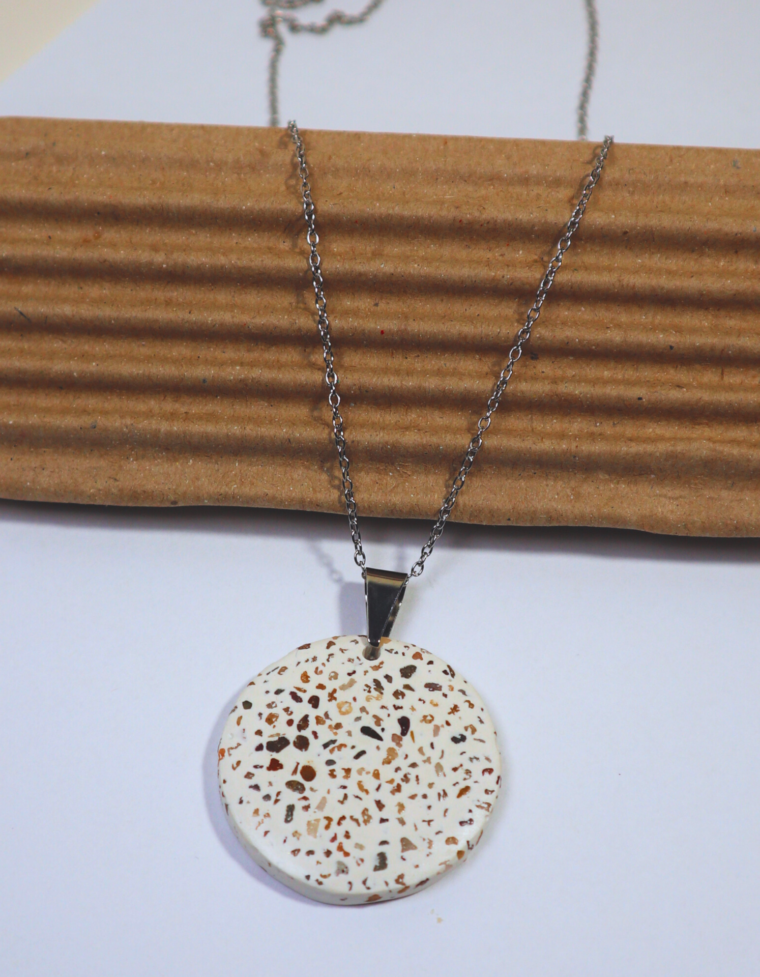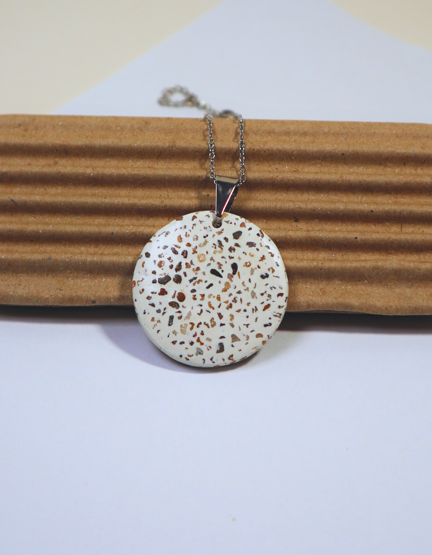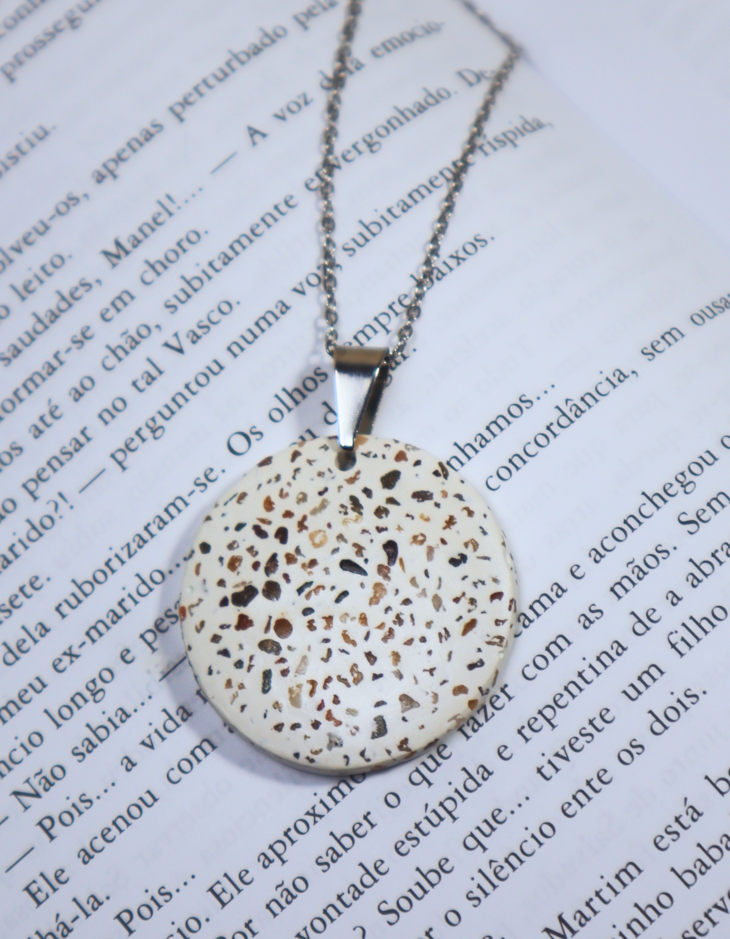 Afirme a sua singularidade com uma peça que resiste ao tempo. O Colar Aurora une a estética orgânica do cimento à durabilidade eterna do aço inoxidável. Cada pendente é moldado à mão, utilizando fragmentos de pedra para criar um efeito terrazzo que é impossível de replicar, tornando a sua peça rigorosamente única no mundo.