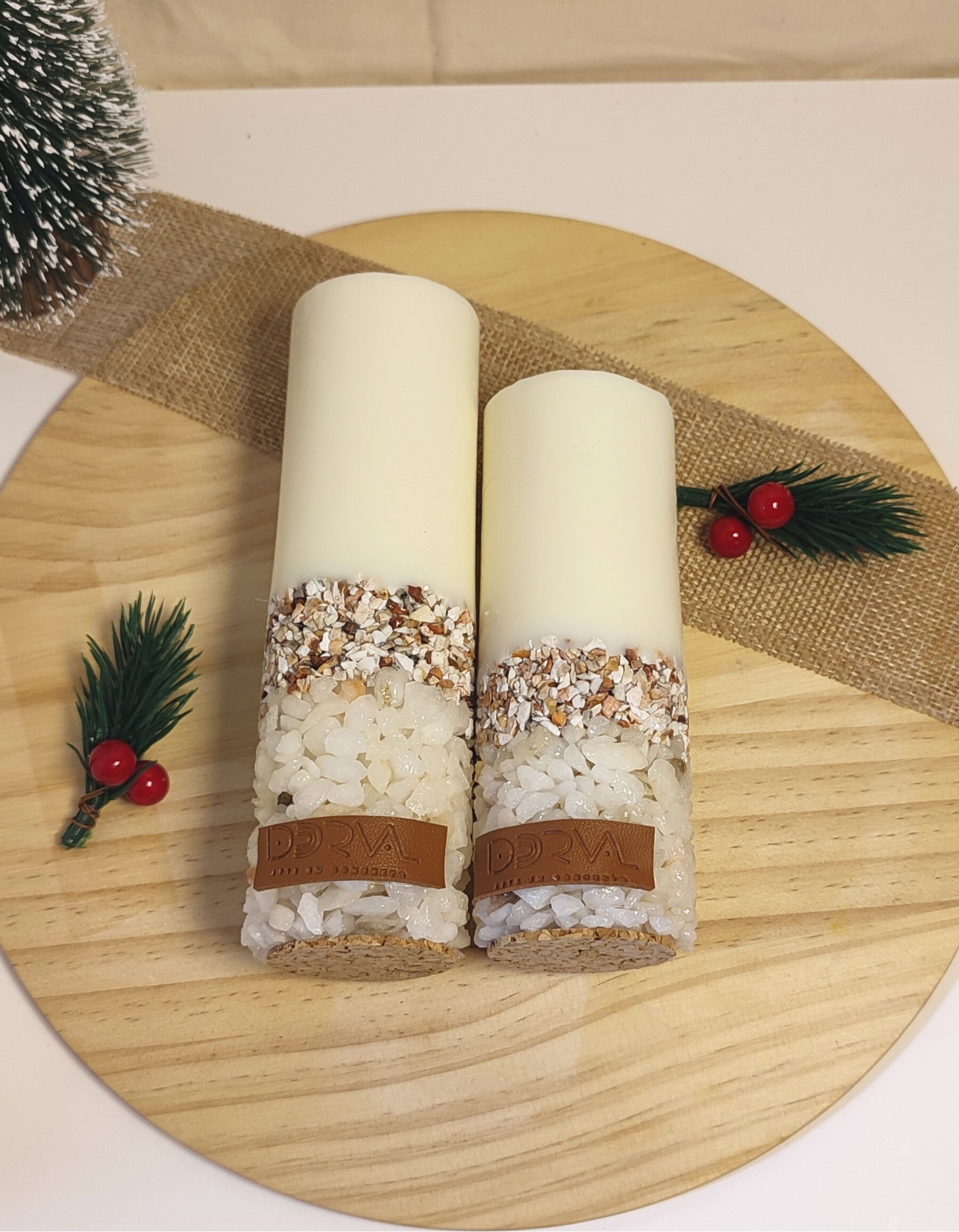 Conjunto de duas velas aromáticas únicas, que combina elegância e sofisticação, com uma base de mármore que as torna uma peça de decoração impecável.