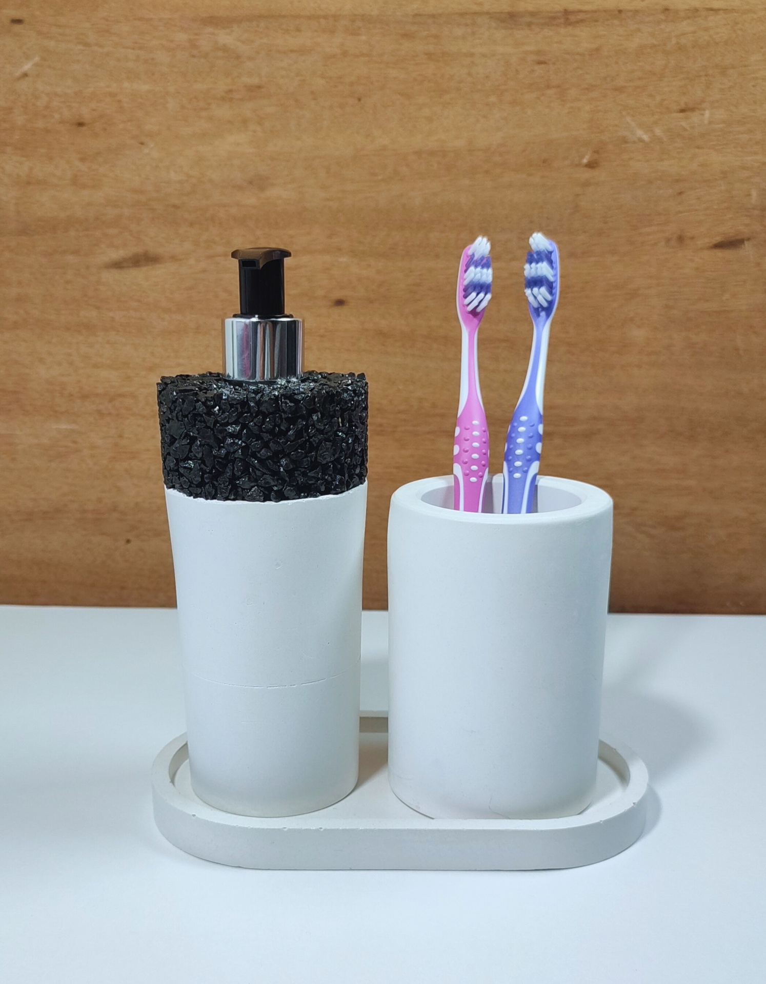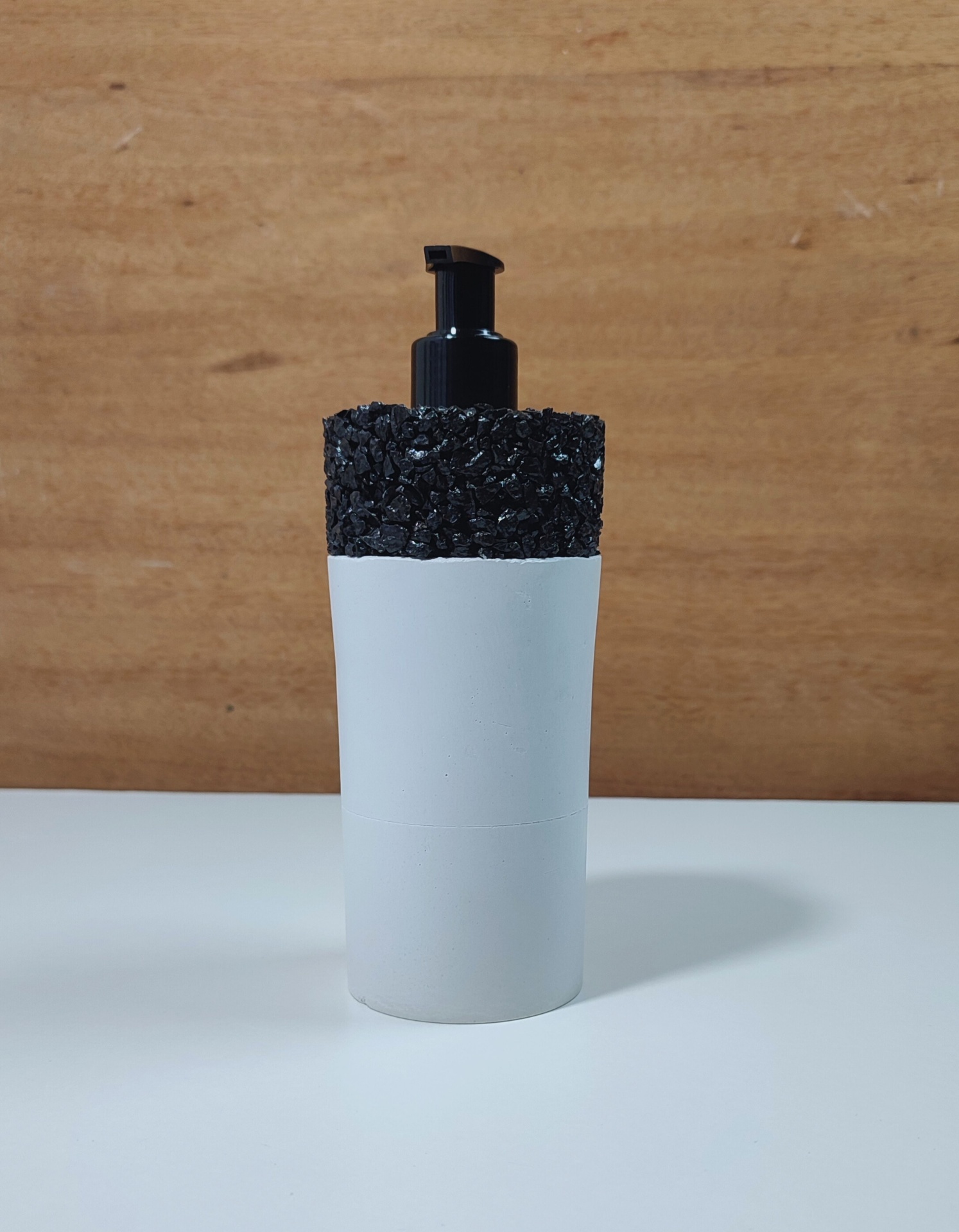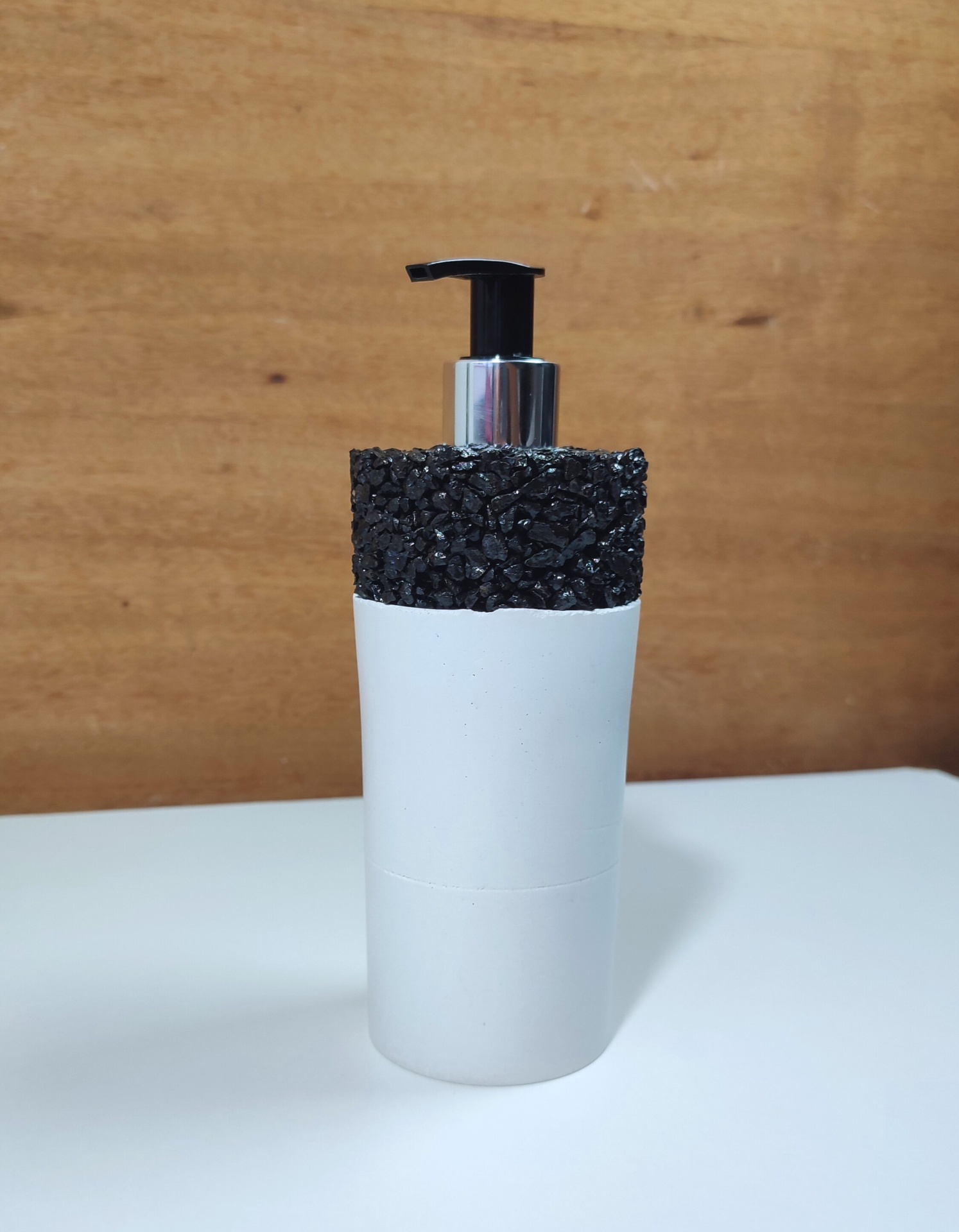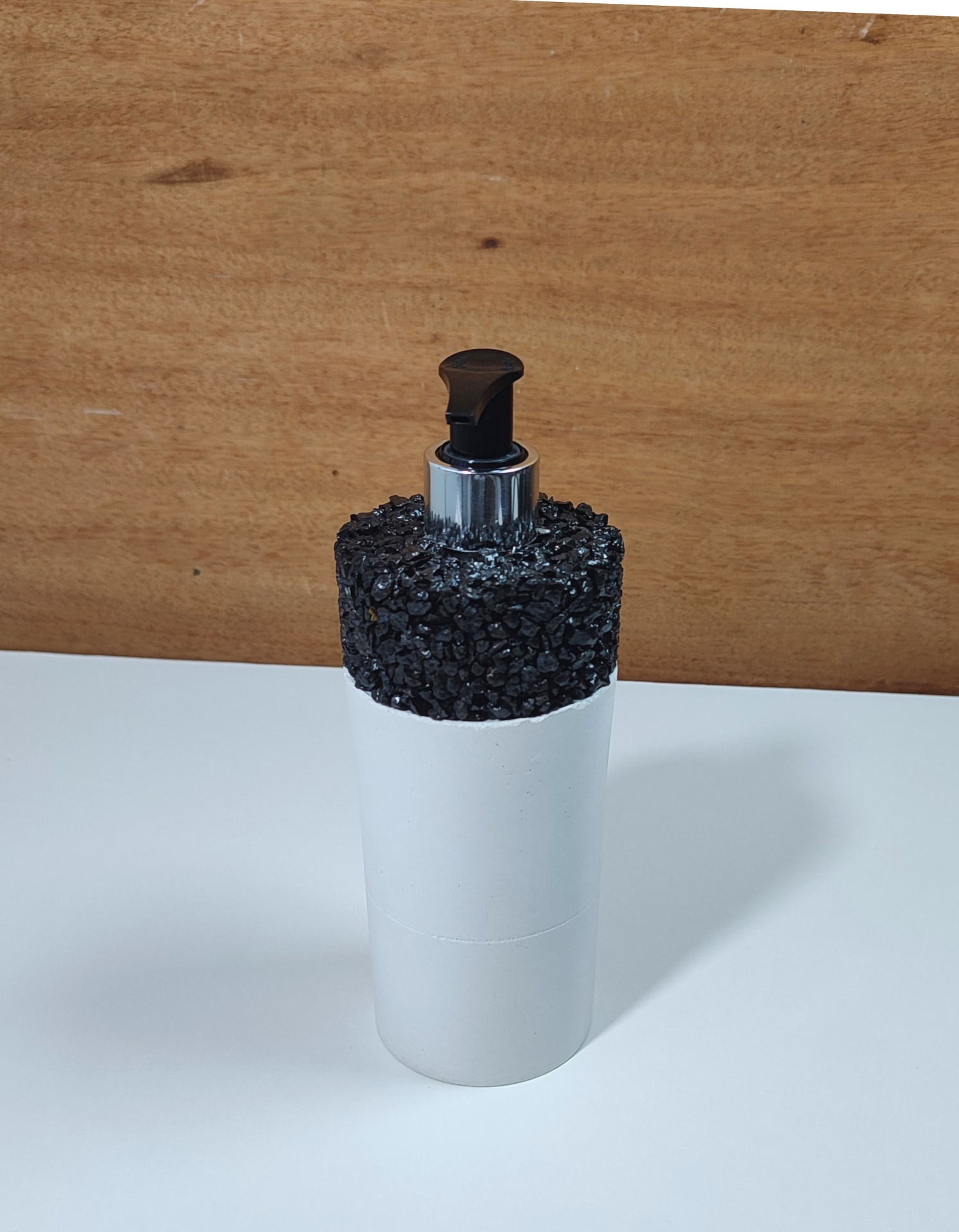 O Dispensador em concreto granilite com pedras resinadas, com o seu design sofisticado, moderno e elegante vai se tornar uma peça indispensável para a sua casa de banho. Pode encher este dispensador recarregável uma e outra vez com o seu sabonete líquido favorito. Aposte na sofisticação e adquira esta peça original e única. Também pode combiná-lo com os outras peças.