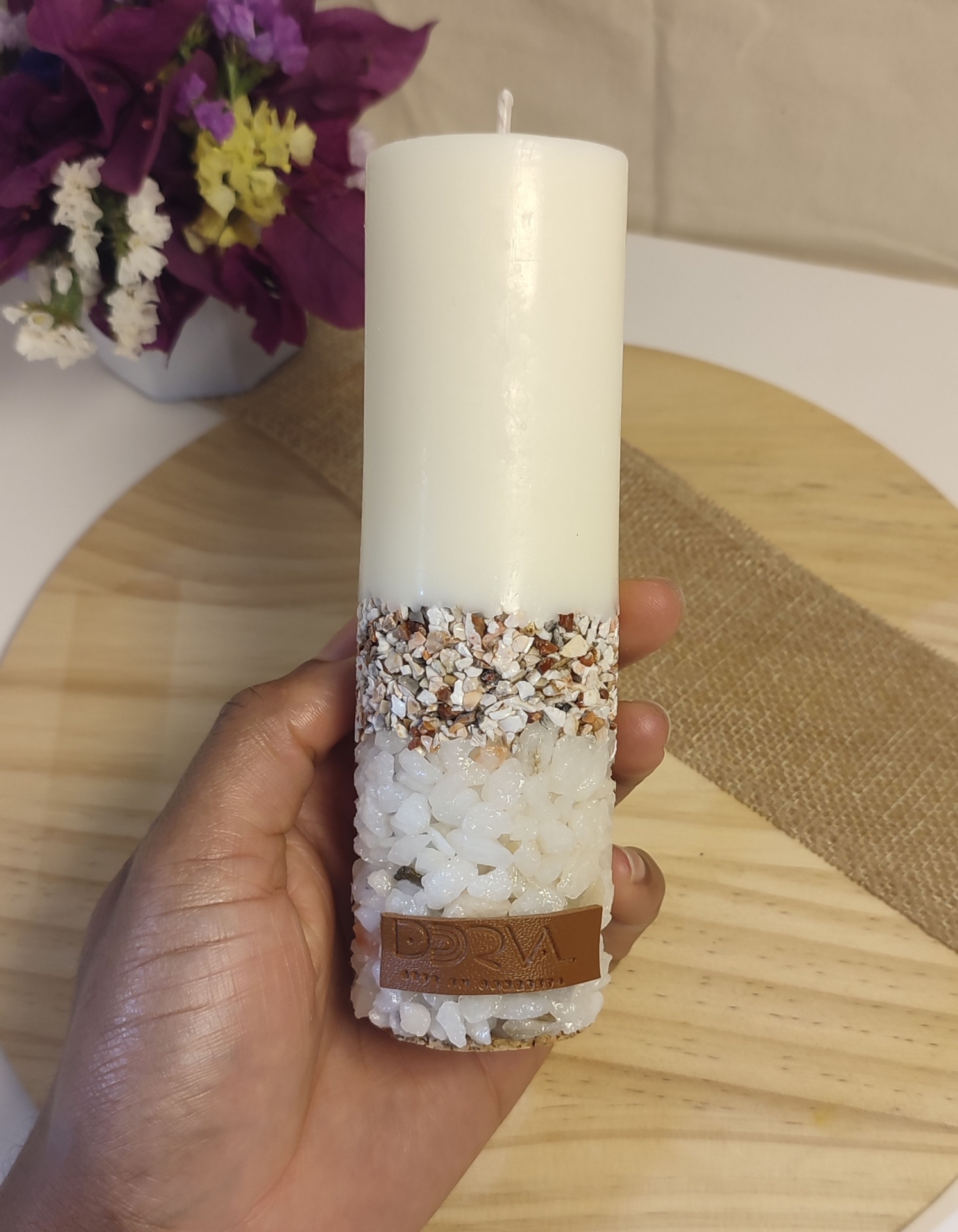 Esta vela aromática única combina elegância e sofisticação, com uma base de mármore que a torna uma peça de decoração impecável.