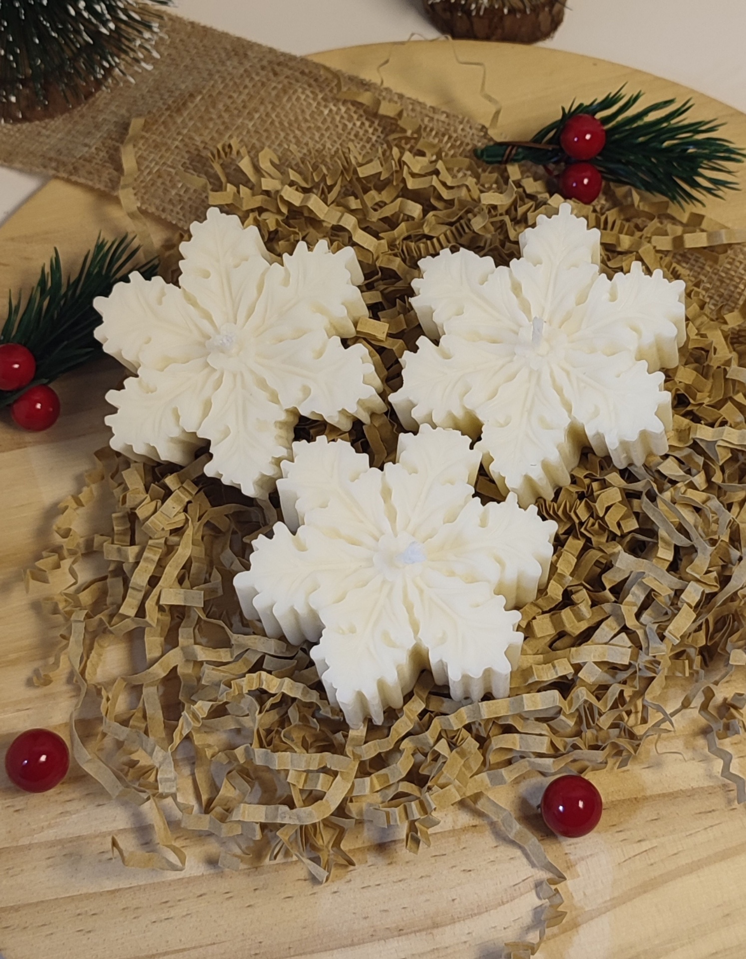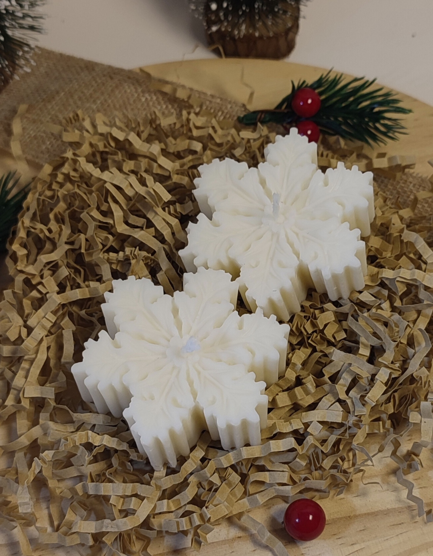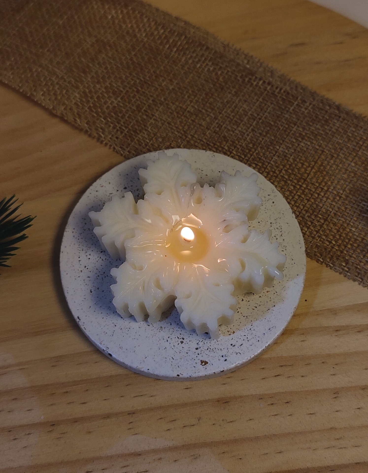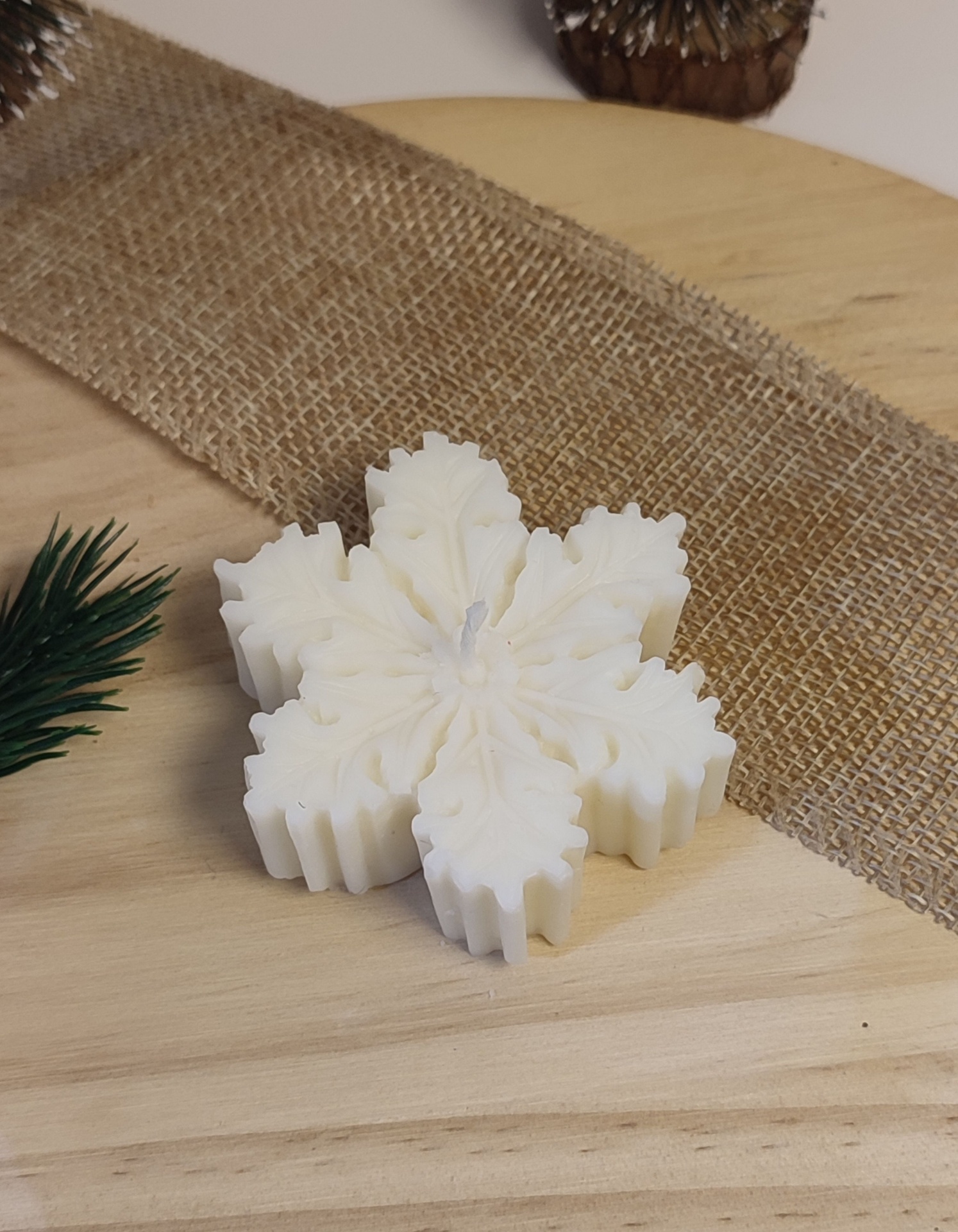 Vela decorativa em formato de floco de neve com detalhes delicados e acabamento premium. Perfeita para decorar no Natal, mesa posta, mesas de festa, winter dinner, brunchs de inverno, centros de mesa e composições temáticas.