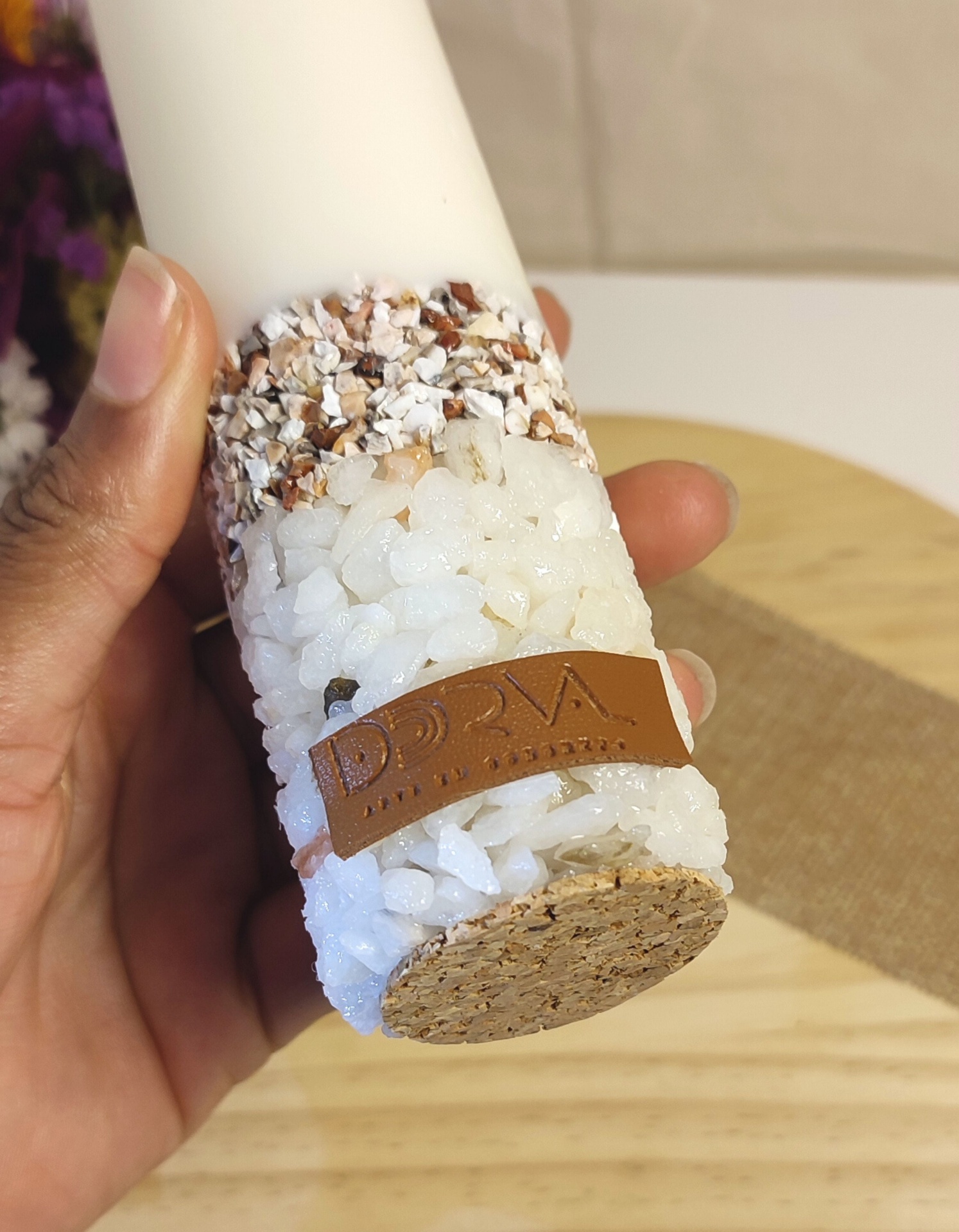 Esta vela aromática única combina elegância e sofisticação, com uma base de mármore que a torna uma peça de decoração impecável.